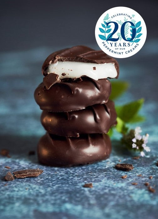 Cooling, creamy fondant centres infused with our single-estate Black Mitcham peppermint and covered with rich, 55% cocoa dark chocolate – a traditional treat revived for the 21st century. It’s no wonder our award-winning peppermint creams are our bestsellers. We recommend keeping a stash in your kitchen cupboard, for rainy day pick-me-ups.